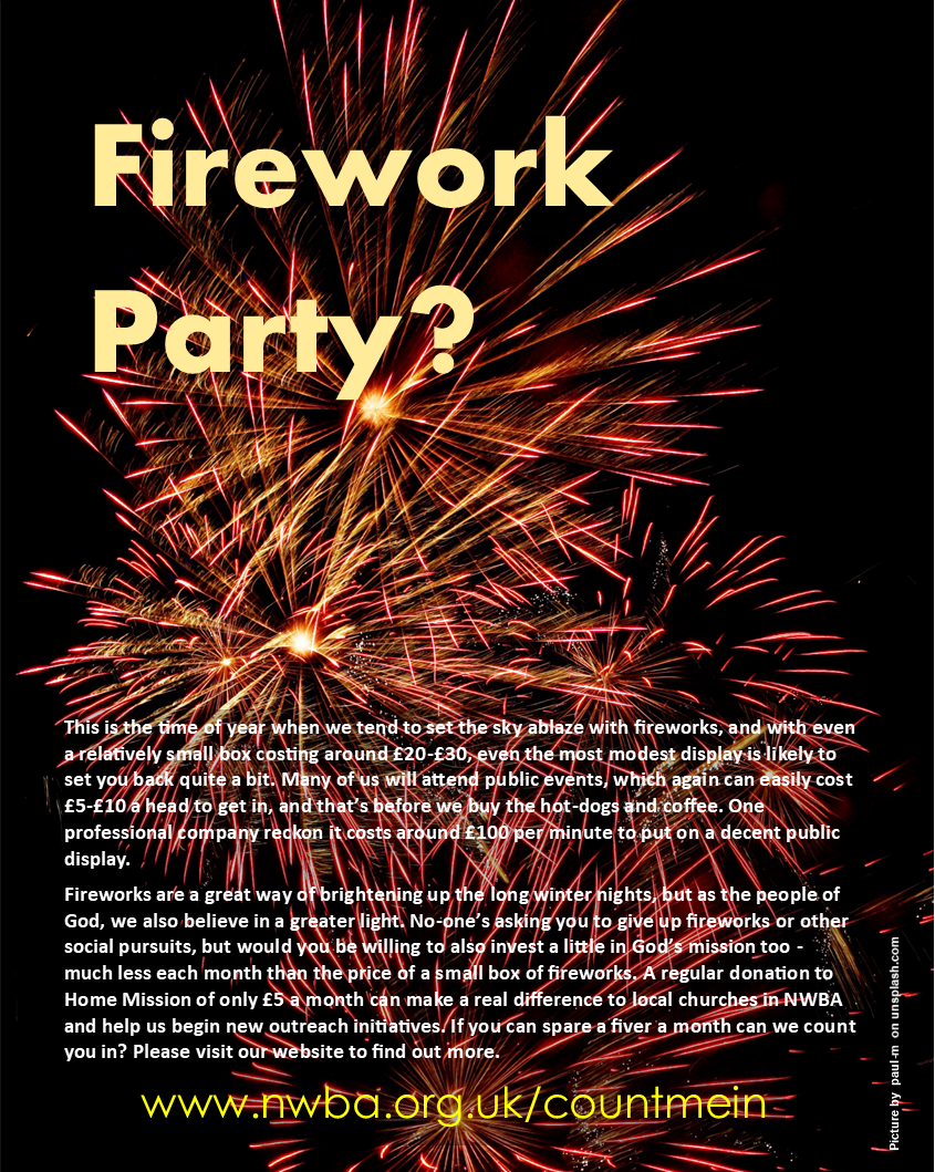 If every member and regular attender at our NWBA churches gave just five pounds per month, we could not only continue everything we currently do,